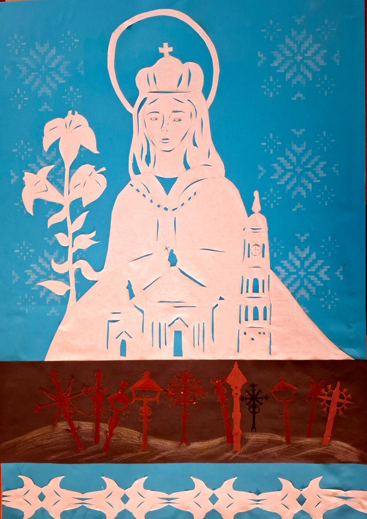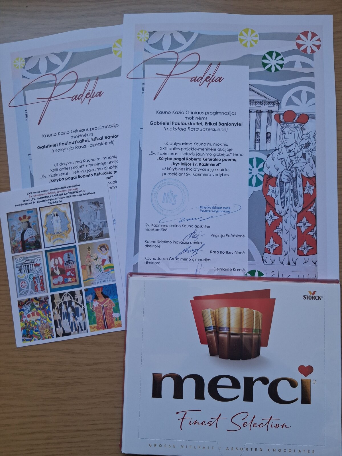 Mokinių meniniai darbai eksponuojami Kauno šv. apaštalų Petro ir Povilo arkikatedroje bazilikoje.