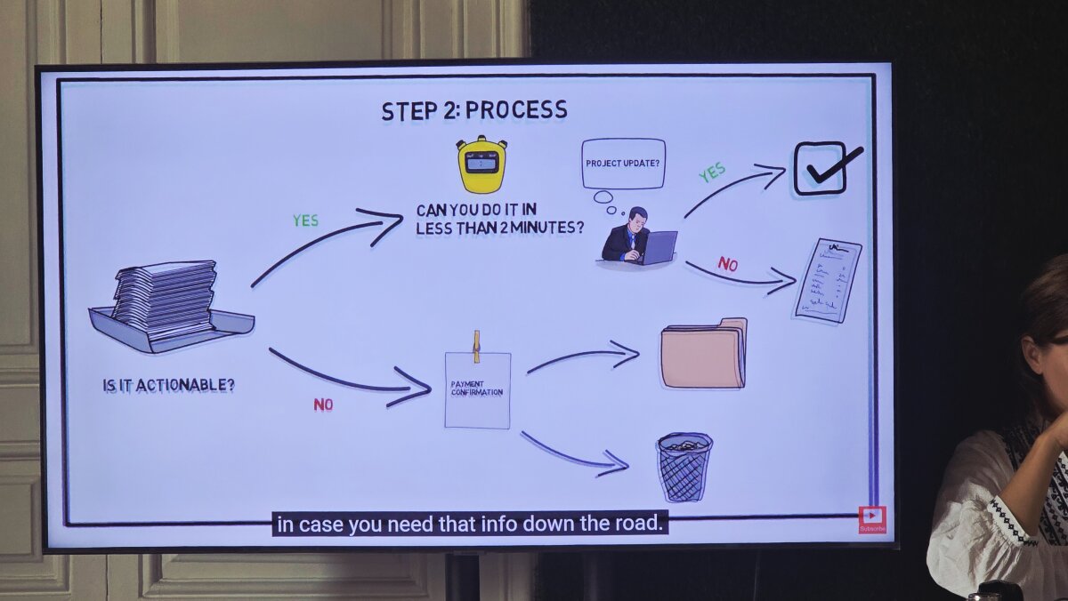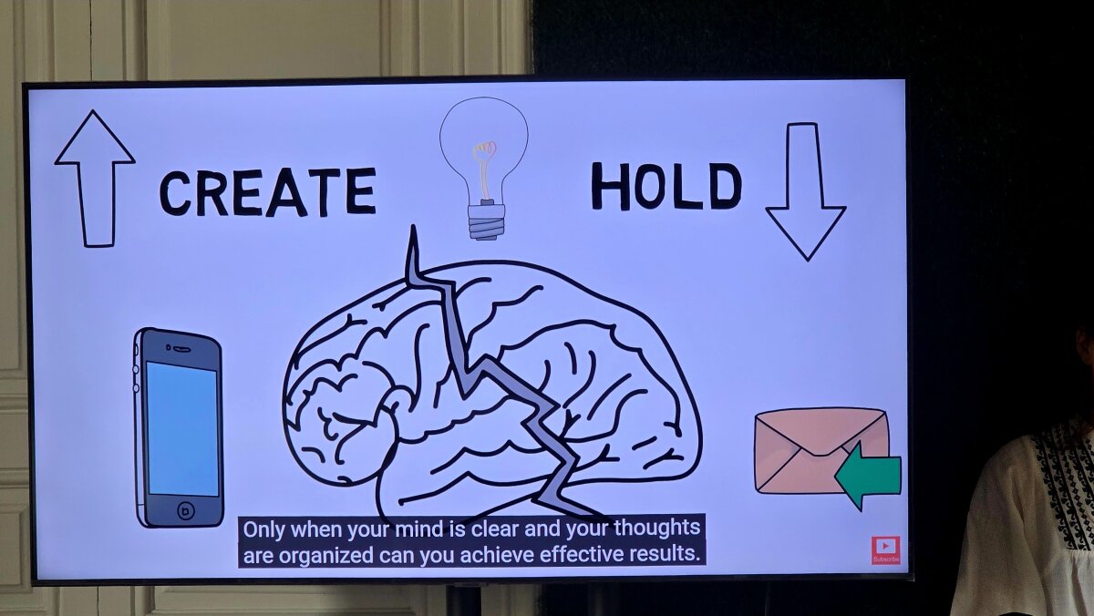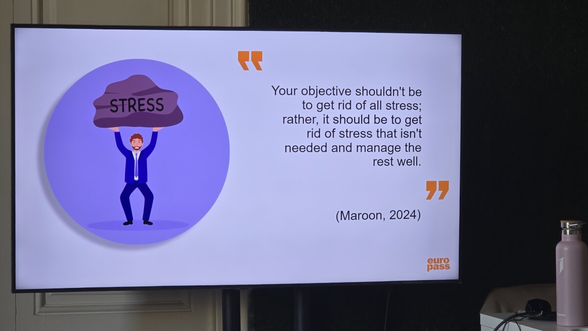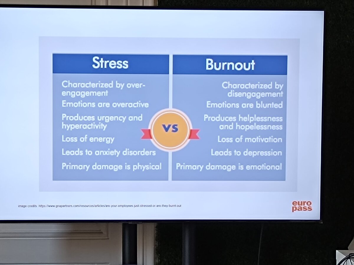 Paskutinės kursų dienos pagrindiniai akcentai – laiko valdymas ir sveikos mitybos įtaka stresui. Maria Del Monte pabrėžė, kad būtina išmokti planuoti kiekvieną savo darbo dieną, nusistatyti ribas, kada reikia ją baigti, kitaip žmogaus organizmui sukeliama didžiulė įtampa, kuri ilgainiui virsta chronišku stresu, galinčiu peraugti į įvairias pavojingas ligas ir „sudeginti“ žmogų.