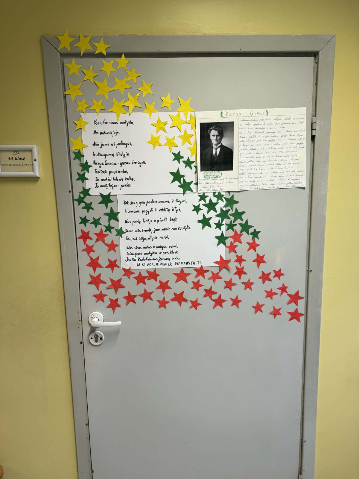 Šios dienos metu 1–4 klasių mokiniai rašė palinkėjimus Kazimui Griniui gimimo dienos proga. Mažųjų mokinių darbuose atsispindėjo nuoširdūs linkėjimai, pagarba istorinei asmenybei ir džiaugsmas prisidedant prie mokyklos tradicijų puoselėjimo.