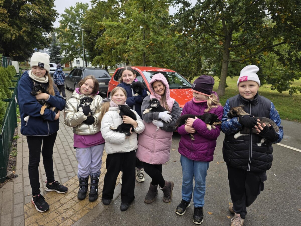 Prieš pradėdami vedžioti šuniukus, klasiokai įteikė darbuotojoms mūsų suaukotą maistą, skanėstus ir padėkos piešinius. Kiekvienas iš mūsų turėjo galimybę pavedžioti didelį ar mažą, vieną ar net kelis šuniukus. Įspūdžių buvo daugybė!
