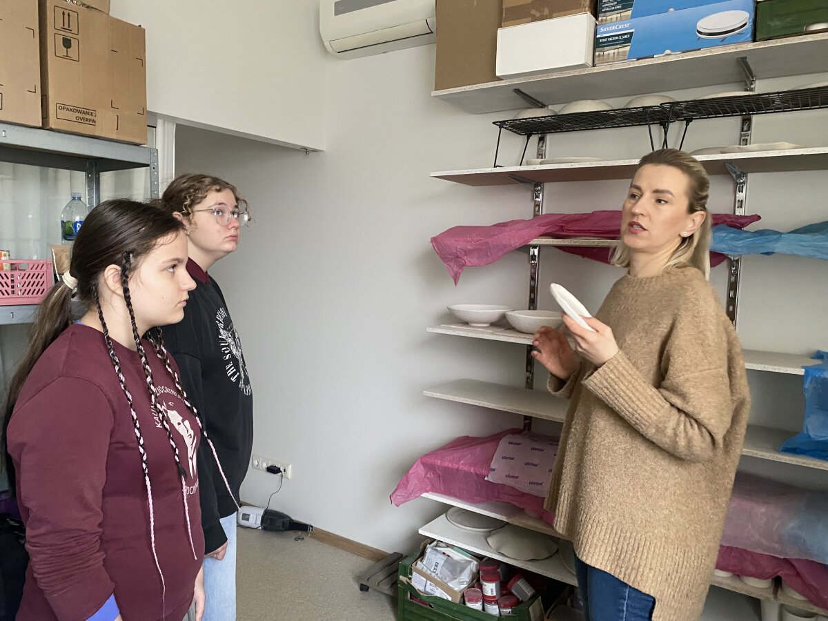Mokinės sužinojo, koks ilgas ir įdomus kelias laukia, kol idėja virsta galutiniu kūriniu: molis turi būti tinkamai paruoštas, iš jo formuojamas darbas, kuris vėliau džiovinamas, glazūruojamas ir degamas krosnyje itin aukštoje temperatūroje. Raminta paaiškino, kad kiekvienas etapas reikalauja didelio atidumo – net menkiausia klaida gali pakeisti rezultatą, tačiau būtent tai ir daro šį darbą įdomų bei kūrybišką.