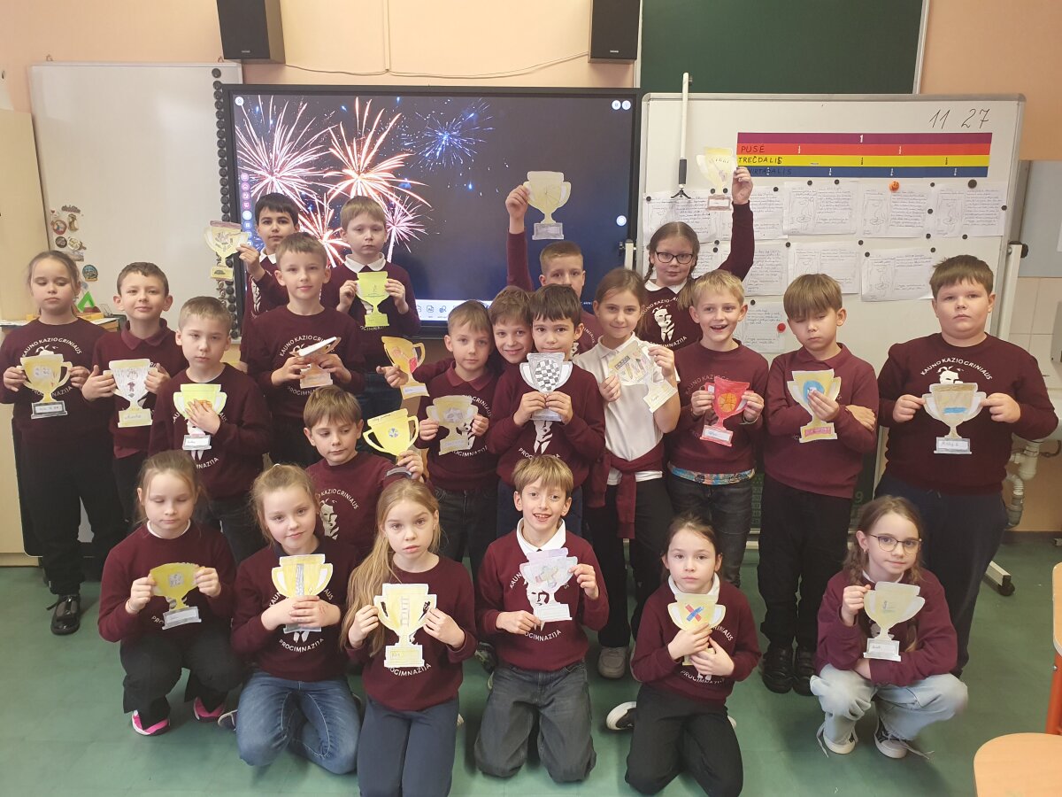 Anglų kalbos veiklose mokiniai vardijo savo asmeninius gebėjimus (pvz., I can draw, I can run, I can sing). Šie gebėjimai vėliau tapo kūrybiniais darbais – simboline „Draugo pastangų taure“, apdovanojimu, kuriame vaizdavo draugo gebėjimus, talentus ar gražius poelgius. Kiekviena taurė tapo asmenišku padėkos ženklu, parodančiu, kad vaikai moka pastebėti ir įvertinti vieni kitus.