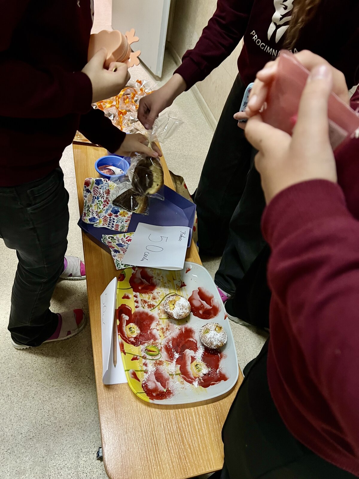 Pirmąją dieną po rudens atostogų - lapkričio 10-ąją, mūsų progimnazijos bendruomenę suvienijo ypatinga iniciatyva - „Pyragų diena". Tai diena, kai skleidžiasi ne tik gardūs kvapai, bet ir šilti jausmai: dalijimasis, nuoširdumas ir noras padėti kitiems. Mokykloje tvyrojo šventinė nuotaika – koridoriuose kvepėjo cinamonu, obuoliais, šokoladu ir gerumu. Mokiniai, tėveliai, mokytojai ir visa progimnazijos bendruomenė nešė pačių keptus pyragus, sausainius, keksiukus bei kitus saldžius gardumynus. Kiekvienas kepinys – tarsi mažas gerumo simbolis, o kiekvienas gabalėlis – prisidėjimas prie kilnaus tikslo.
