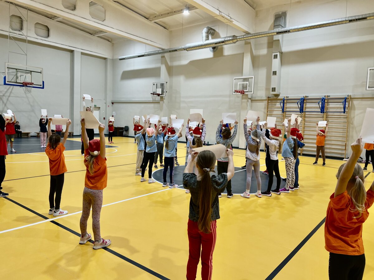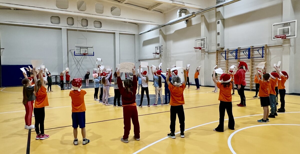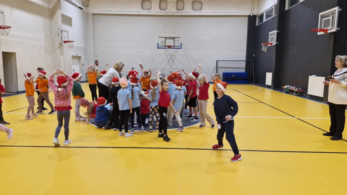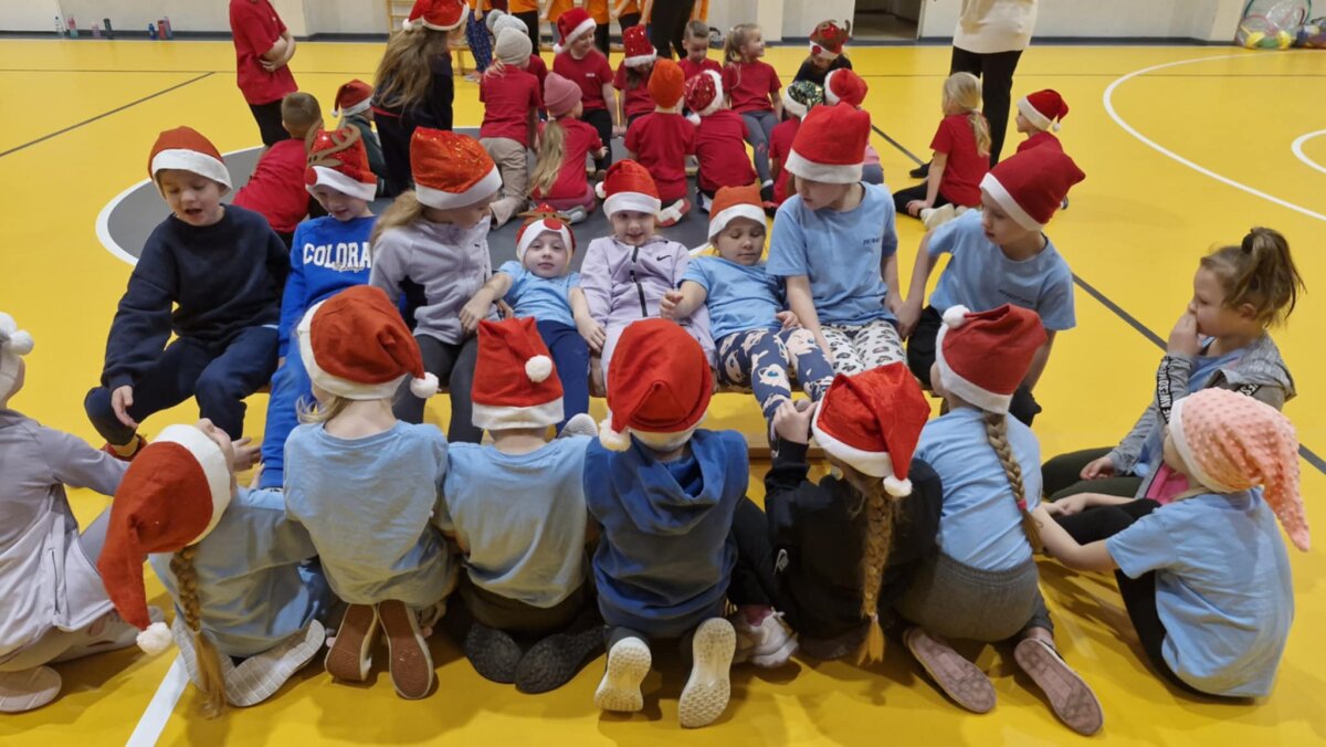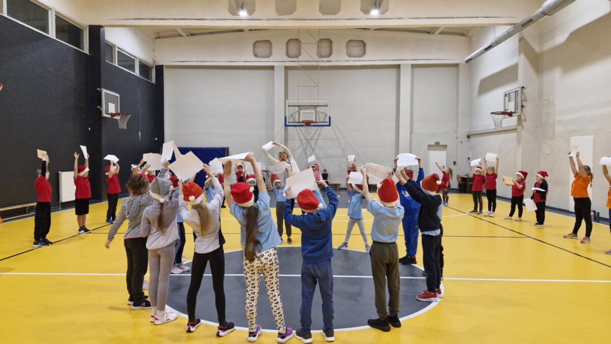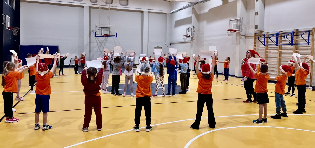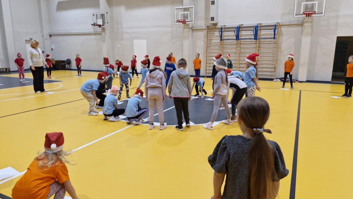 Gruodžio 19 d. 1b, 1c ir 1d klasių mokiniai dalyvavo šventiškoje ir linksmoje fizinio ugdymo pamokoje. Skambant kalėdinei muzikai, pasipuošę nykštukų kepurėlėmis ir iš balto popieriaus pasigaminę „sniego gniūžtes“, pirmokai atliko mankštos pratimus. Pagrindinėje pamokos dalyje vaikai rungtyniavo linksmosiose estafetėse ir žaidė judriuosius žaidimus. Ypatinga atmosfera sporto salėje padėjo suderinti fizinį aktyvumą su artėjančių švenčių džiaugsmu, o mokiniams paliko daug teigiamų įspūdžių.