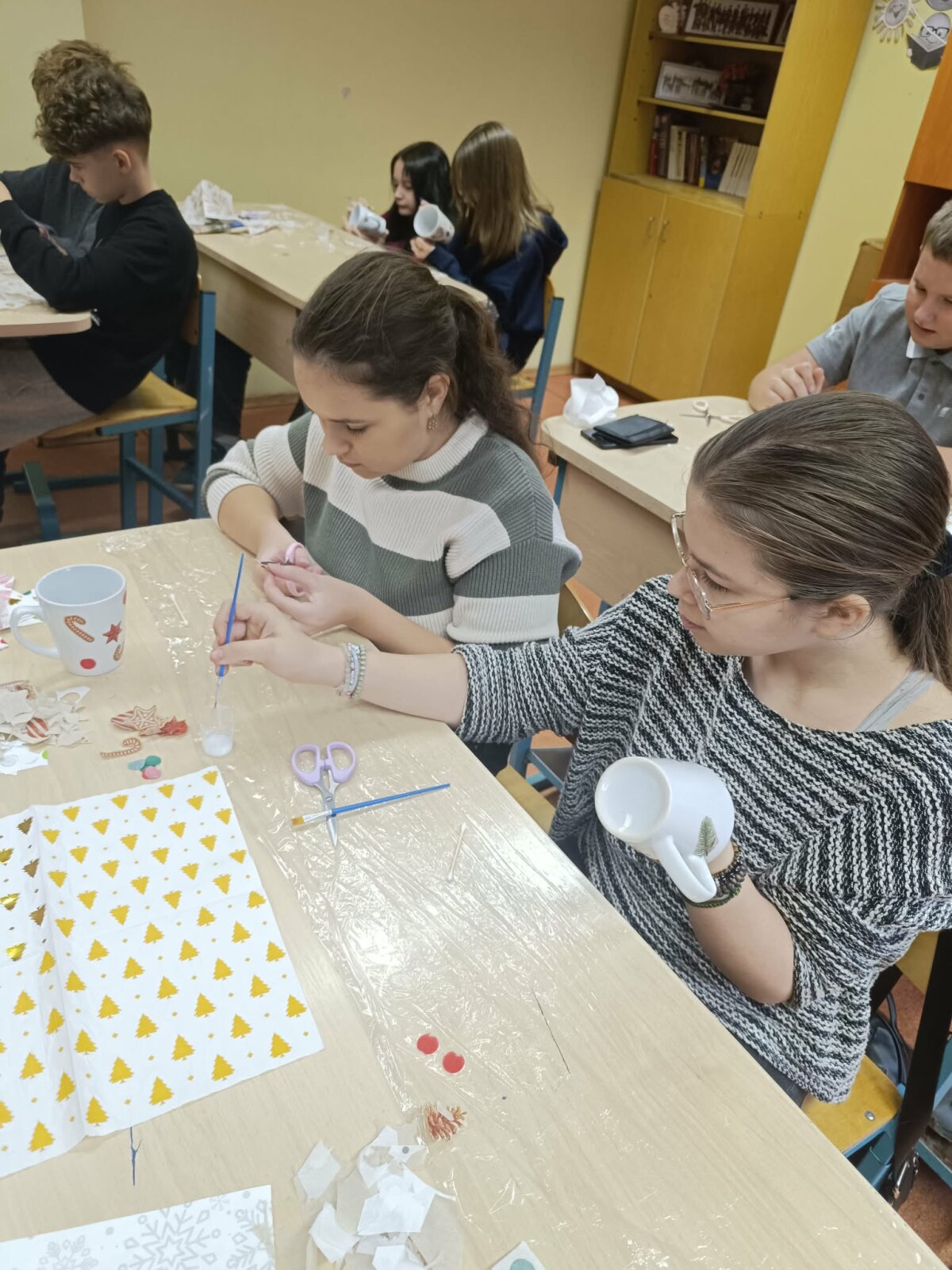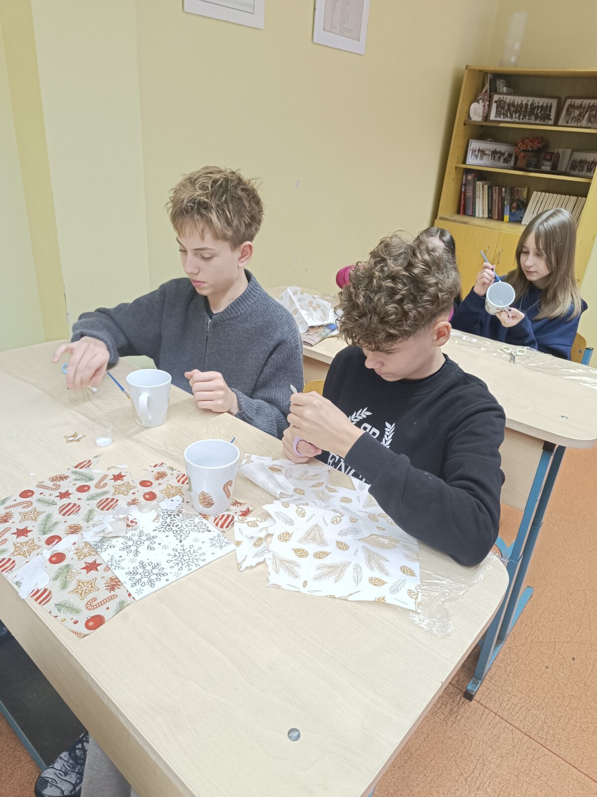 Artėjant Kalėdoms 7 e klasės mokiniai nusprendė pasinerti į kūrybos pasaulį ir savo rankomis, taikydami dekupažo techniką, dekoruoti puodelį kalėdine tematika.