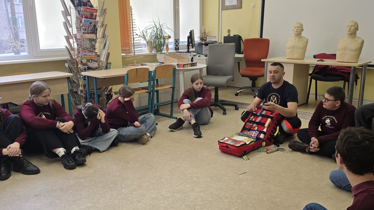 Vakar mūsų progimnazijoje vyko prasminga ir itin reikalinga edukacija, kurios tikslas – suteikti mokiniams praktinių žinių ir įgūdžių, kaip elgtis nelaimės ar pavojingos situacijos atveju. Edukacijoje dalyvavo 5c, 6a ir 7a klasių mokiniai.