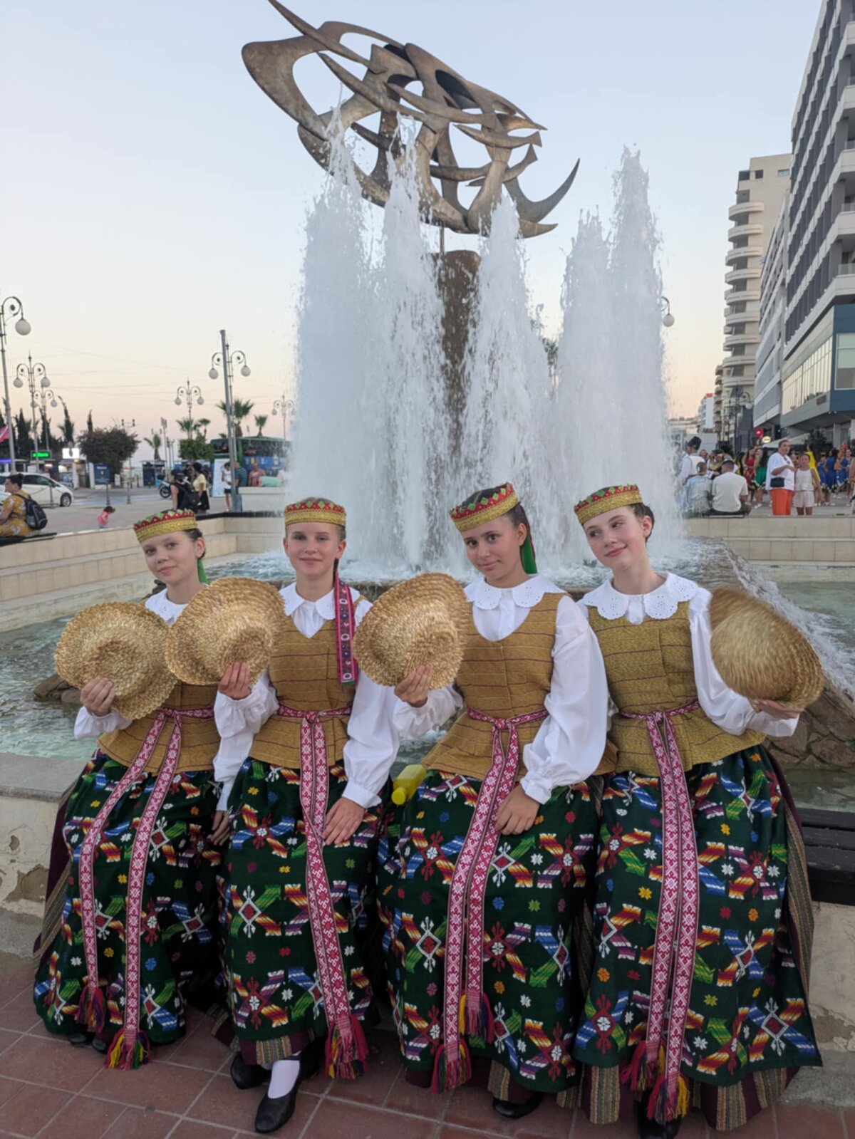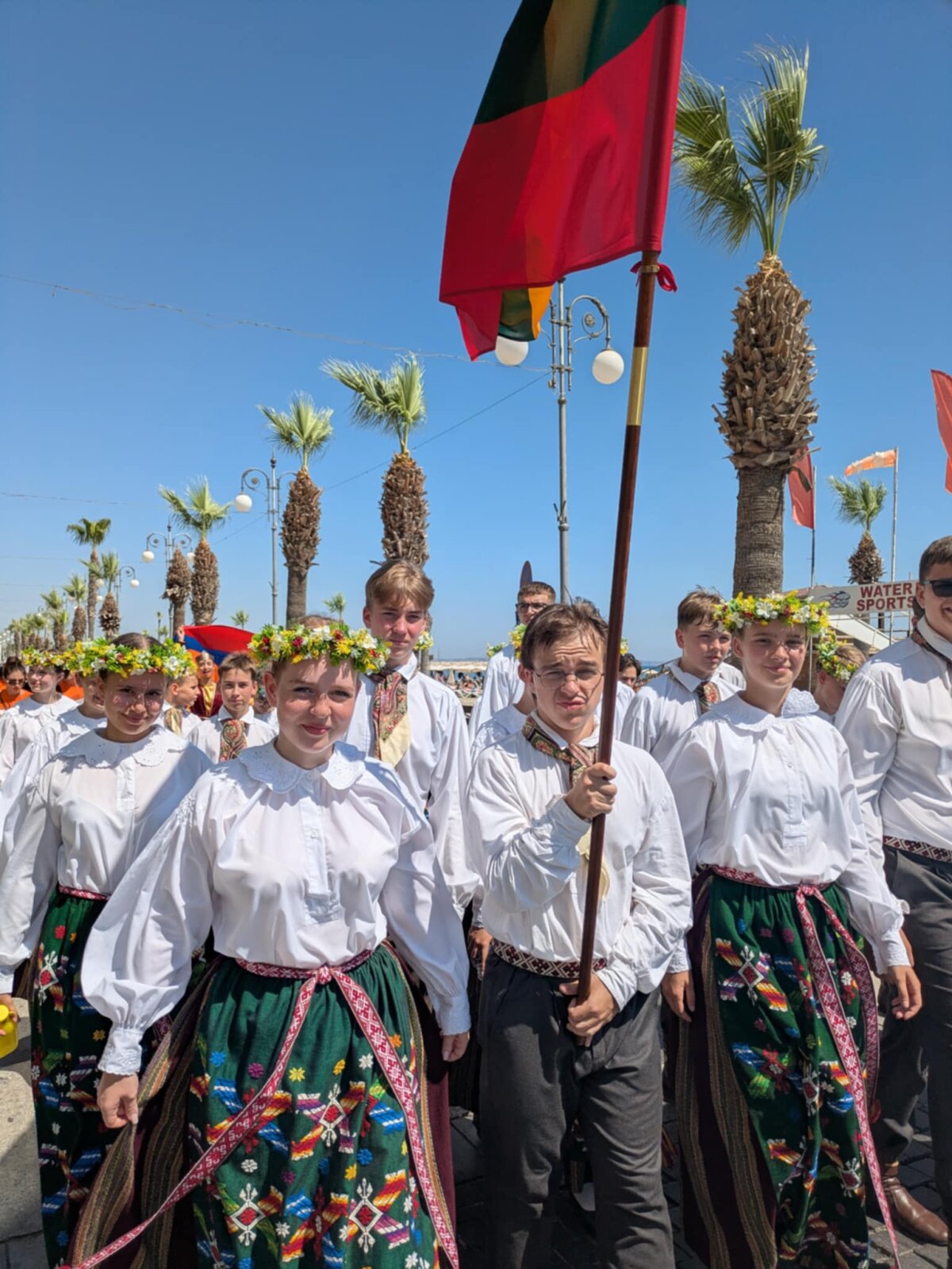 Mūsų progimnazijos liaudiškų šokių kolektyvas „Žolynėliai“ rugsėjo mėnesį dalyvavo Tarptautiniame Viduržemio jūros folkloro festivalyje, Larnakos mieste, Kipre. Į festivalį atvyko kolektyvai iš Graikijos, Armėnijos, Gruzijos, Bulgarijos, Egipto, Libano, Izraelio, Kipro. Kiekviena šalis po didžiulio parado centrine Larnakos gatve - pristatė savo tradicinius šokius, muziką, dainas. Festivalio metu „Žolynėliai“ turėjo penkis koncertus. Trys koncertai vyko krantinės scenoje, vienas mokiniams -gimnazijoje ir dar vienas-garsioje istorinėje vietoje -prie Šv. Lozoriaus bažnyčios. Organizatorių ir dalyvių nuomonė buvo vieninga – „Žolynėlių“ aukšta sceninė kultūra ir technika gali papuošti bet kurį festivalį pasaulyje. Festivalio tema „Kartu-mes galime“ buvo įprasminta seminaru , kuriame sužinojome apie integruotas galimybes šokti žmonėms su judėjimo negalia. Pamatėme net penkias skirtingas šokio kompozicijas su vežimėliais iš Izraelio grupės. Visiems dalyviams ir žiūrovams tai buvo susimastymo akimirka - apie neribotas žmogaus galimybes, stiprybes, bendrystę. Kiekvieną vakarą po koncertų festivalio dalyviai šoko, draugavo, linksminosi šokių vakaruose. Organizatorių išvykoje laivu visi smagiai maudėsi ir nardė jūroje. Po festivalio teko aplankyti istorinį Kipro miestą - Pafosą. Lankėmės archeologiniame senovinių mozaikų muziejuje. Vykome į legendinę Afroditės gimimo vietą. Laipiojome baltosiomis uolomis. Pamatėme bananų auginimo giraites. Ir 32 laipsnių karštį vėsinome Viduržemio jūros vandenyje. Kipras apjungė savyje viską -kolektyvo tarpusavio draugystę, pažintį su kitomis tautomis, gamtos ir istorinių vietų grožį, saulę ir jūrą. Buvome nustebinti tėvelių pasitikimu oro uoste - su dainomis, gėlėmis ir balionais. Ačiū, kad esame kartu.