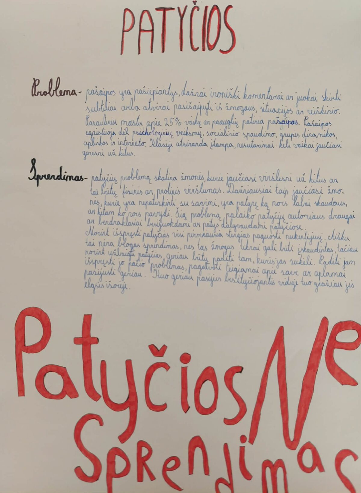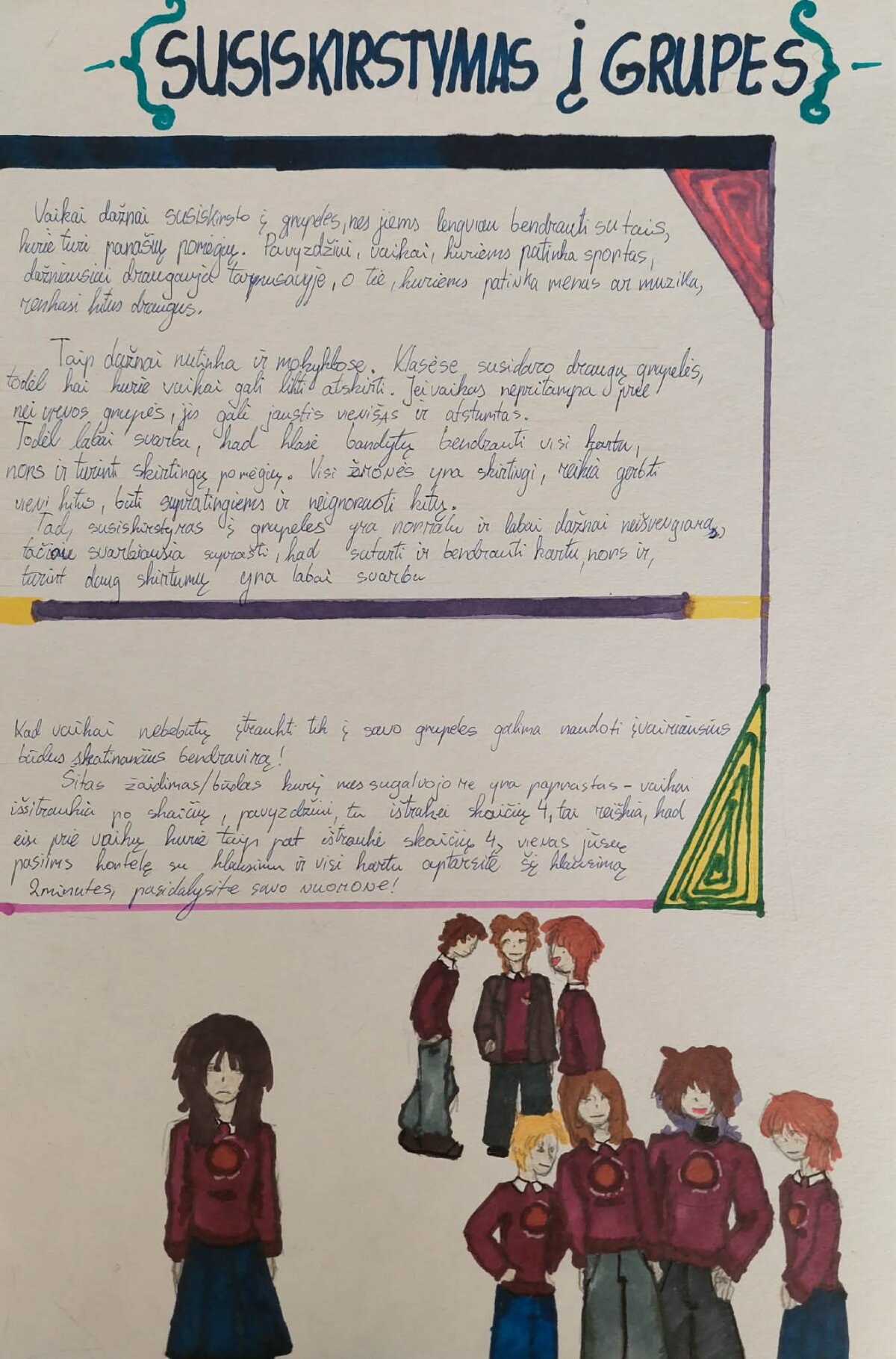 Gyvenimo įgūdžių pamokose mokiniai įgyvendino projektą, kurio metu patys tapo savo klasės problemų sprendėjais. Dirbdami grupėse, jie analizavo realiai klasėje egzistuojančias situacijas, ieškojo jų priežasčių ir kūrė kūrybiškus, praktiškai pritaikomus sprendimus.