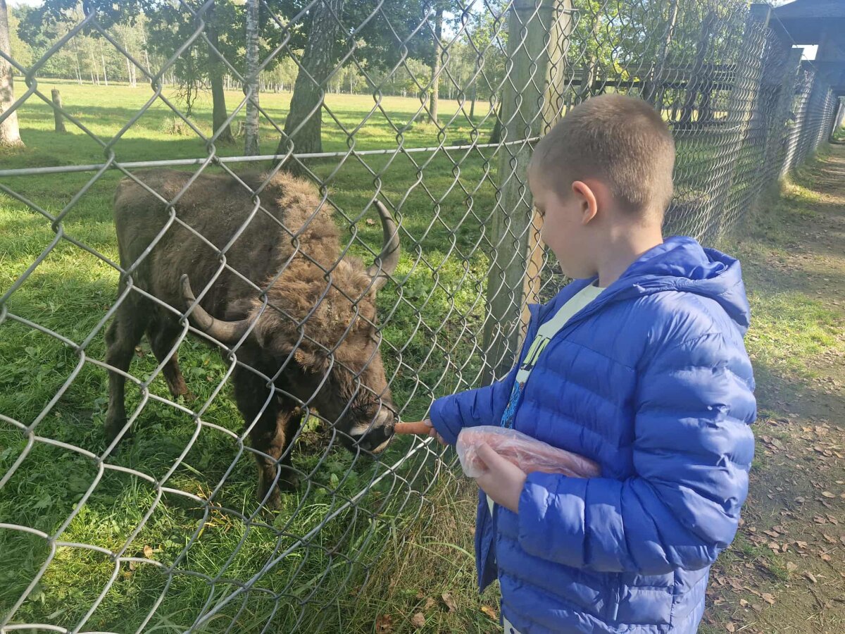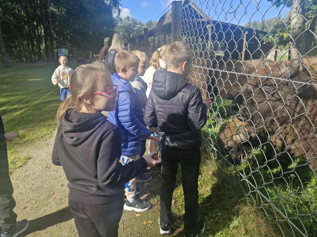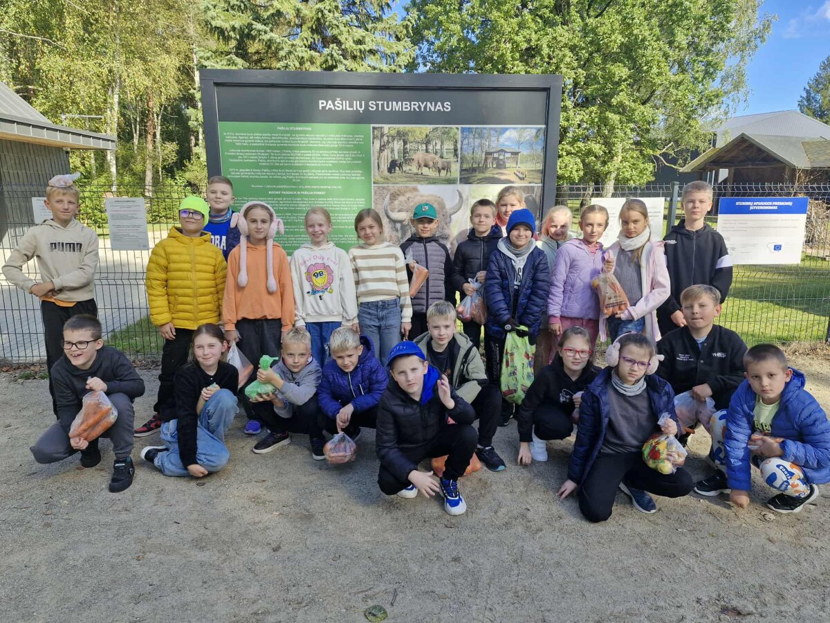 Atsisveikinome su svetinga šeimininke ir vykome į Pašilių stumbryną. Čia trečiokai pamatė kadaise Lietuvos giriose laisvai klajojusius bei kunigaikščių medžiotus didingus žvėris – stumbrus. Aptvaruose gyvenantys ir prie lankytojų dėmesio jau pripratę stumbrai mielai vaišinosi mokinių atvežtomis rudeninėmis daržo gėrybėmis, leidosi glostomi bei fotografuojami. Pašilių stumbryne mokiniai pasivaikščiojo įrengtu pažintiniu taku, susipažino su informaciniuose stenduose pateikta informacija apie Pašilių miško gyvūniją.
