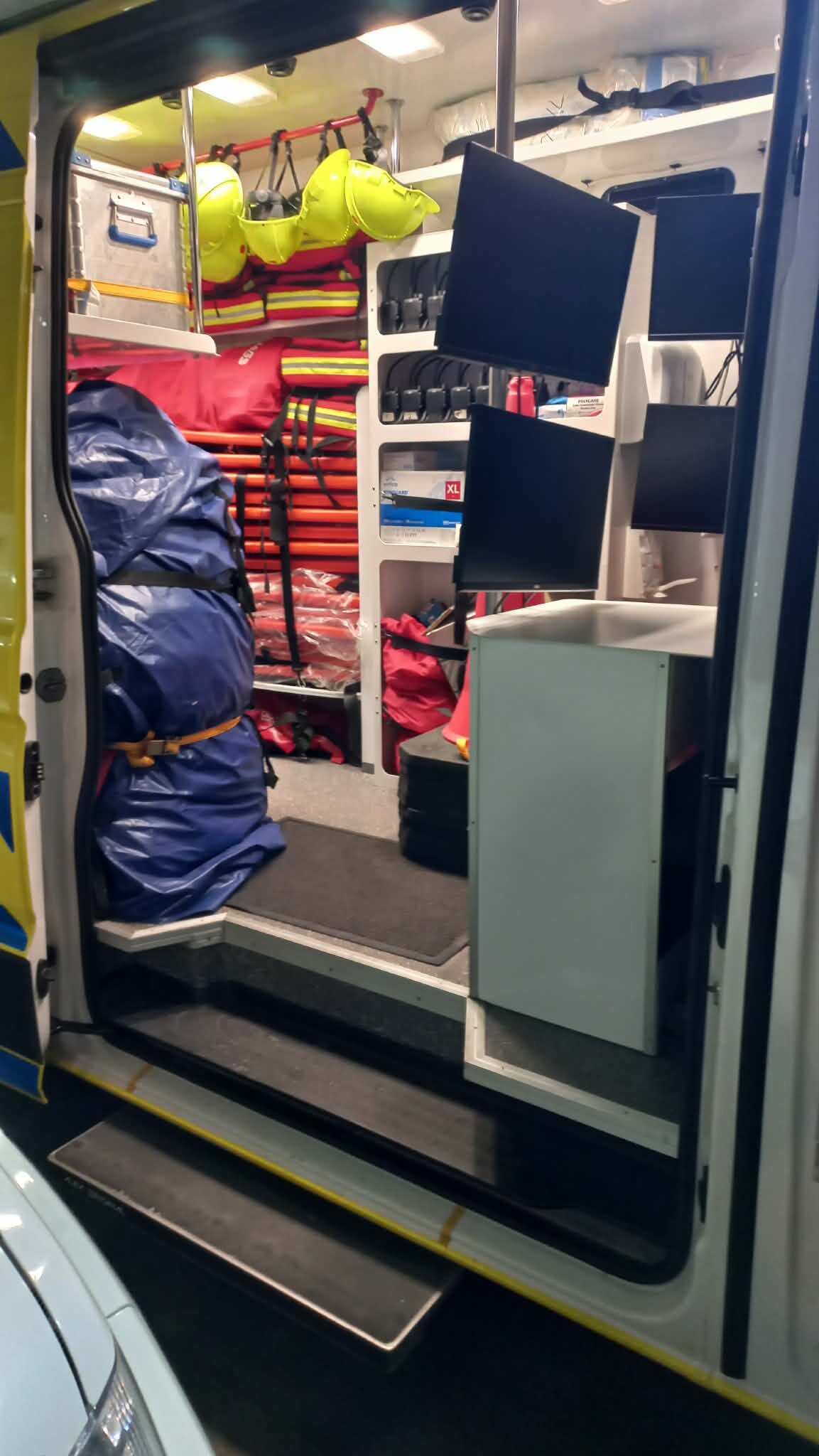 Taip pat pamatėme ir specialią greitosios pagalbos mašiną, skirtą masinėms nelaimėms, apie kurią medikai pasakojo, jog tokia yra vienintelė Lietuvoje. Ji pritaikyta teikti pagalbą didelio masto nelaimių metu, kai sužeistųjų būna daug. Be to, išvydome ir kitos spalvos greitosios pagalbos automobilius, kurie – naujos kartos sprendimas, padedantis dar geriau atpažinti specialiąsias tarnybas kelyje.