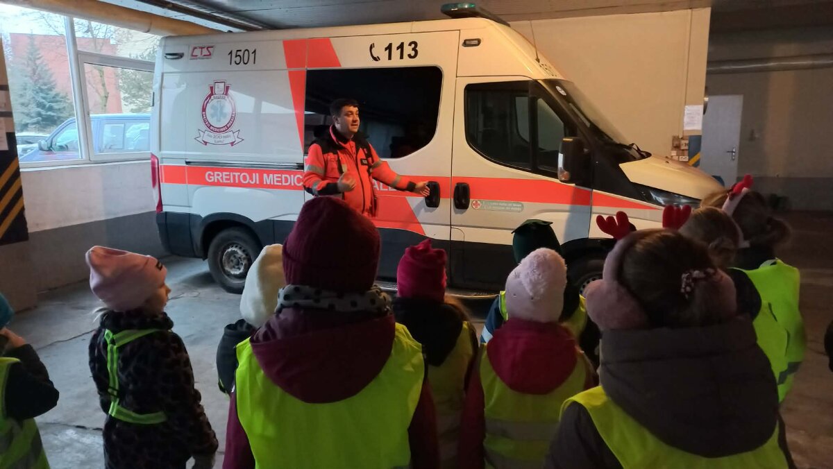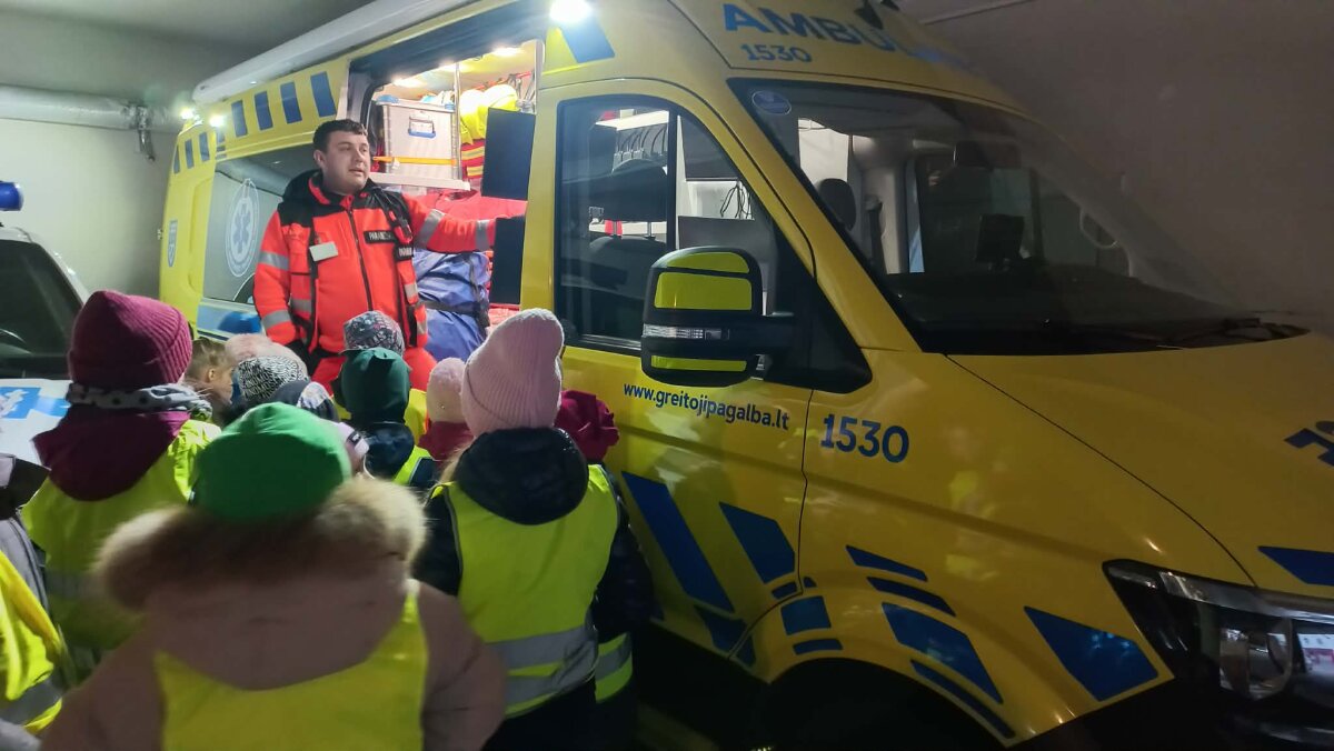 Smalsūs ir pilni klausimų 1a ir 3a klasės mokiniai leidosi į pažintinę kelionę ten, kur kasdien skubama gelbėti gyvybes – į Greitosios medicinos pagalbos stotį. Tai buvo ypatinga išvyka, leidusi iš arti pamatyti ir suprasti, kaip veikia pagalba, kuri atskuba tada, kai jos labiausiai reikia, susipažinome su labai atsakingu ir kilniu medikų darbu. Apsilankėme dispečerinėje, kur pamatėme, kaip priimami skubūs pagalbos skambučiai. Girdėjome, kaip žmonės kvietė greitąją pagalbą, pasakojo apie nutikusias nelaimes, o dispečeriai ramiai, aiškiai ir labai tiksliai uždavinėjo klausimus, teikė pirmuosius patarimus ir nedelsdami siuntė pagalbą į įvykio vietą. Supratome, kaip svarbu nelaimės atveju nepanikuoti, kalbėti aiškiai ir pateikti tikslią informaciją.