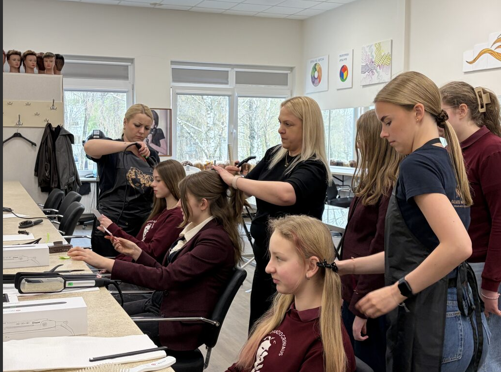 Kitą dieną, balandžio 17-ąją, 7–8 klasių mokinių grupė lankėsi Karaliaus Mindaugo profesinio mokymo centre. Šiame centre mokiniai susipažino su itin plačiu profesijų spektru – nuo grožio paslaugų ir sveikatos priežiūros iki socialinių bei paslaugų sričių. Mokiniai ne tik stebėjo specialistų darbą, bet ir aktyviai dalyvavo veiklose. Jie turėjo galimybę išbandyti paramediko profesiją – susipažino su pirmosios pagalbos teikimo pagrindais, mokėsi, kaip elgtis ekstremaliose situacijose. Taip pat „pasimatavo“ floristo profesiją – kūrė puokšteles, derino spalvas ir mokėsi augalų komponavimo subtilybių. Be to, mokiniai stebėjo kirpėjų ir kosmetologų darbą, dalyvavo kūrybinėse dirbtuvėse bei bendravo su šių sričių specialistais.