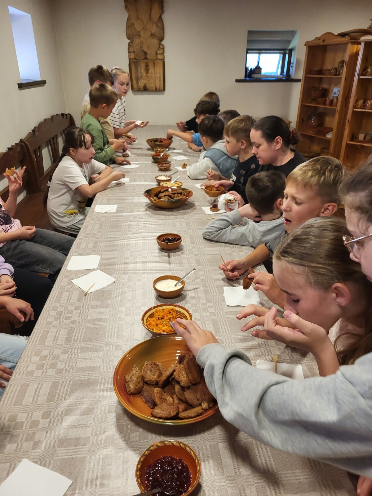Įveikę jaudulį, kitoje – „Keptuvėj čirška, burnoj tirpsta...“ – edukacijoje mokiniai buvo supažindinti su XIX–XX a. sandūros Sūduvos valstiečių maisto gaminimo ypatumais, prietarais, tradicijomis ir folkloru. Vaikai demonstravo savo sumanumą atpažindami įvairius grūdus bei buities rakandus, sužinojo, iš ko maišomas blendinys, ir pasigardžiuodami ragavo blynus su įvairiausiais pagardais.