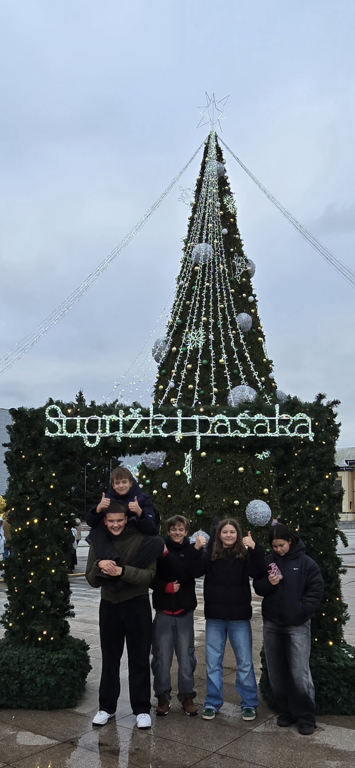 Vėliau laukė staigmena – veikla buvo papildyta interaktyviais laisvalaikio žaidimais. Kelionės pabaigoje mokiniai mėgavosi šventine nuotaika prie miesto kalėdinės eglutės. Šilta aplinka, šviesos ir bendrystės jausmas suteikė daug džiaugsmo ir paliko gražius prisiminimus.