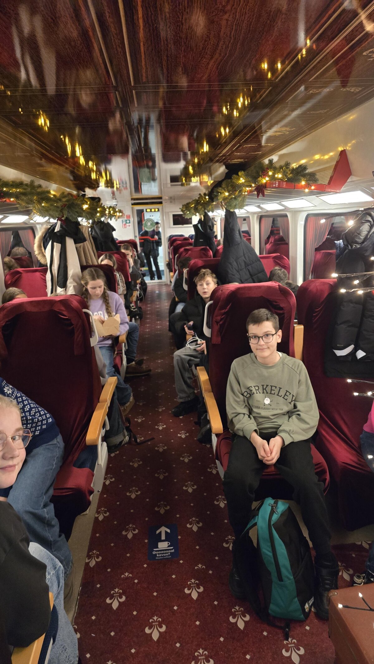 Šįkart 6a klasės kalėdinė kelionė buvo ne tokia kaip visada: norėdami pajusti šventinę nuotaiką į sostinę išsiruošėme kalėdiniu traukiniu. Traukinys, papuoštas lemputėmis ir apgaubtas jaukia šventine atmosfera, vaikams paliko daug įspūdžių – visą kelią skambėjo juokas, pokalbiai ir žiemos nuotaiką kurianti muzika.